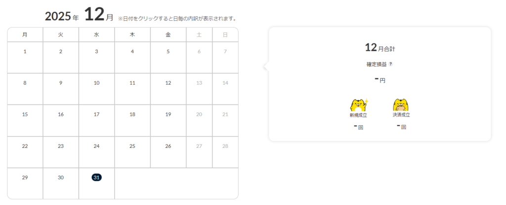 2025年の年間損益はプラス22.9万円でした。内訳は売買益10.8万、スワップ12.1万となります。