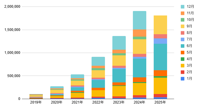 2019年から始めていますので6年目の月別配当金状況は以下のようになっています。