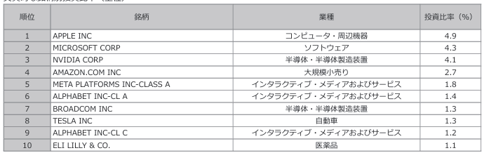 私が積立てしている「野村DC外国株式インデックスF」の主要な構成銘柄は以下のようになっています。(野村アセットマネジメントより引用)